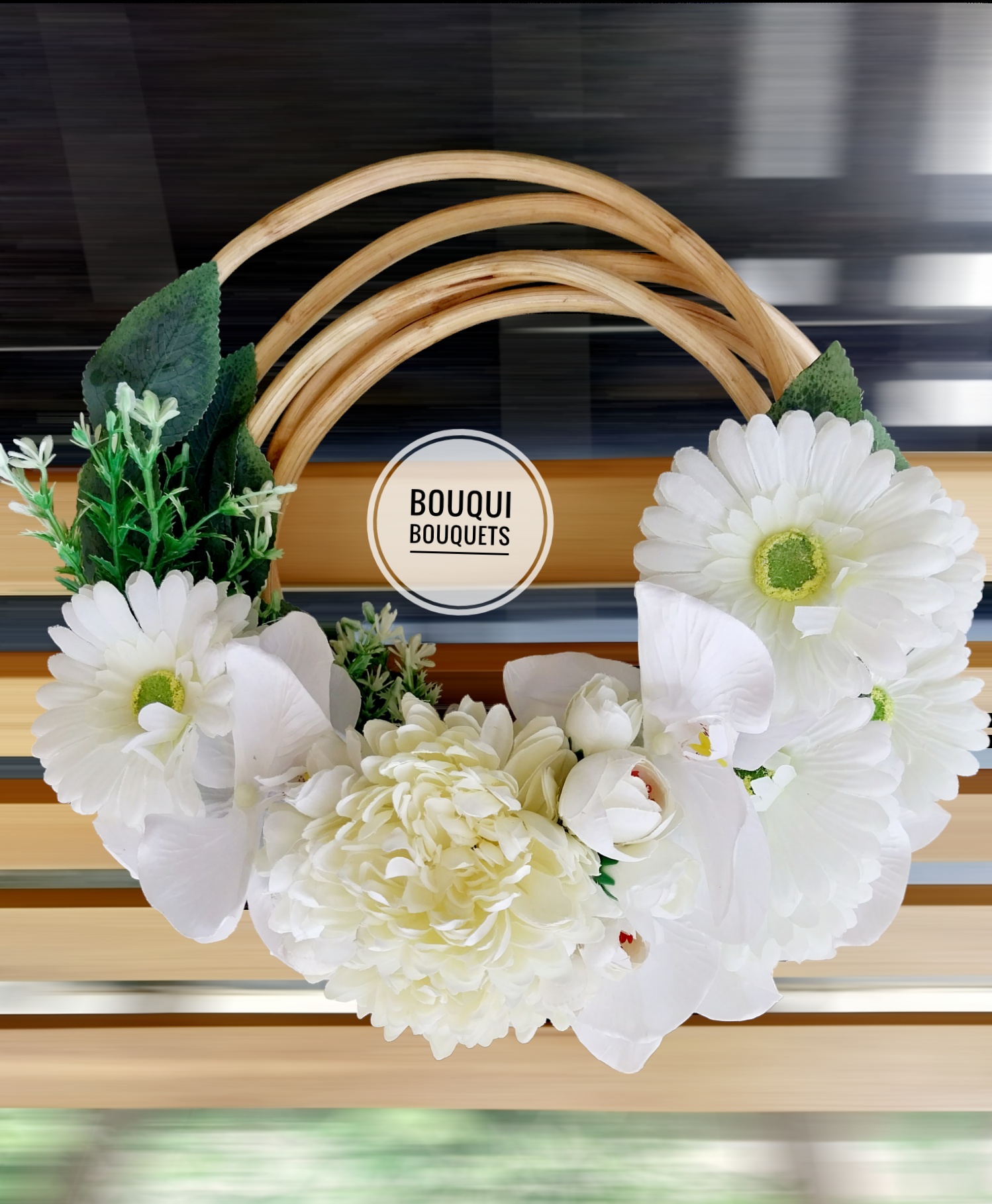 Beautifully crafted floral hoops with wooden handle is just perfect for your court wedding and bridesmaids.