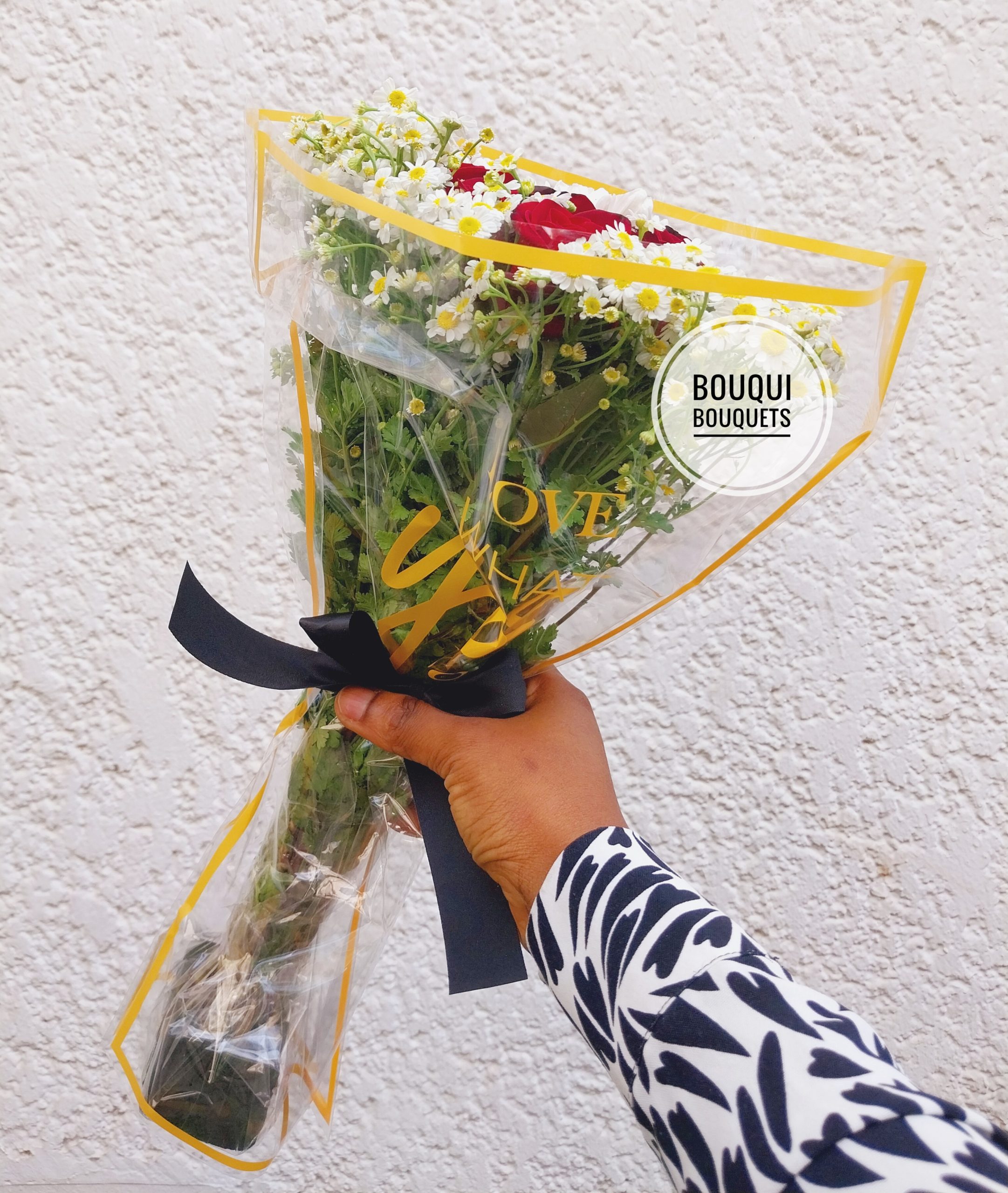 This is a mini size bouquet and can be made in your preferred choice of colors and flowers.